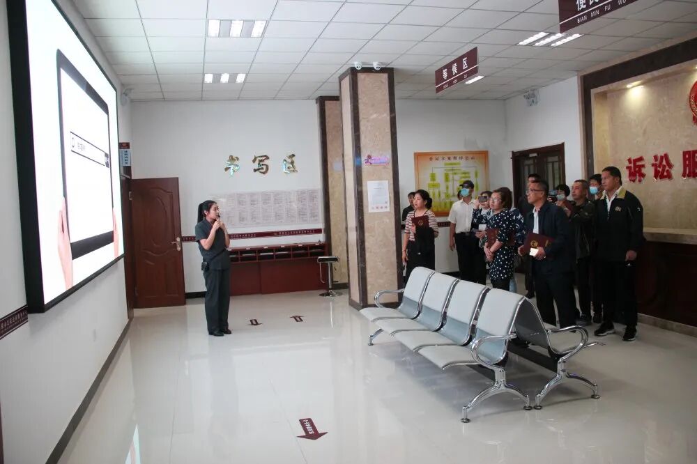 在解说员的引导下,陪审员们先后参观了诉讼服务大厅、党建大厅、家事少年法庭、互联网法庭、执行指挥中心等地。