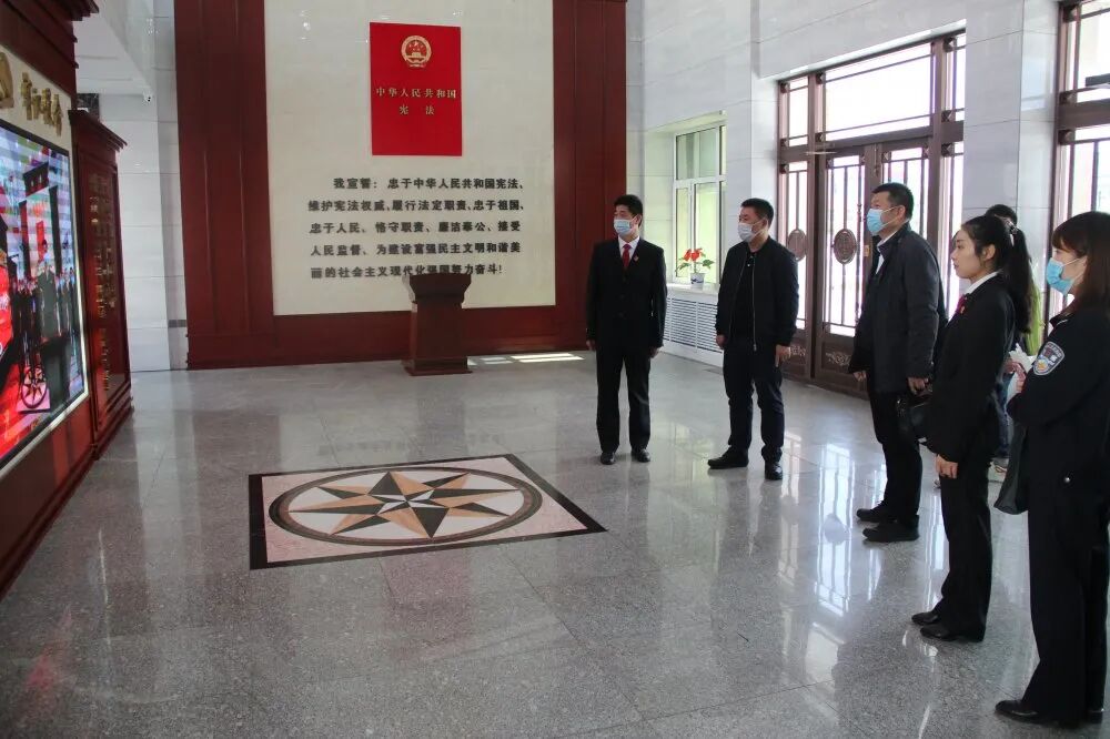 审务督察组一行参加了穆棱法院第138次“公众开放日”活动,参观视察了穆棱法院诉讼服务中心、党建大厅、互联网法庭,穆棱法院党组成员、副院长徐远见,党组成员、执行局局长高志刚陪同参观检查。