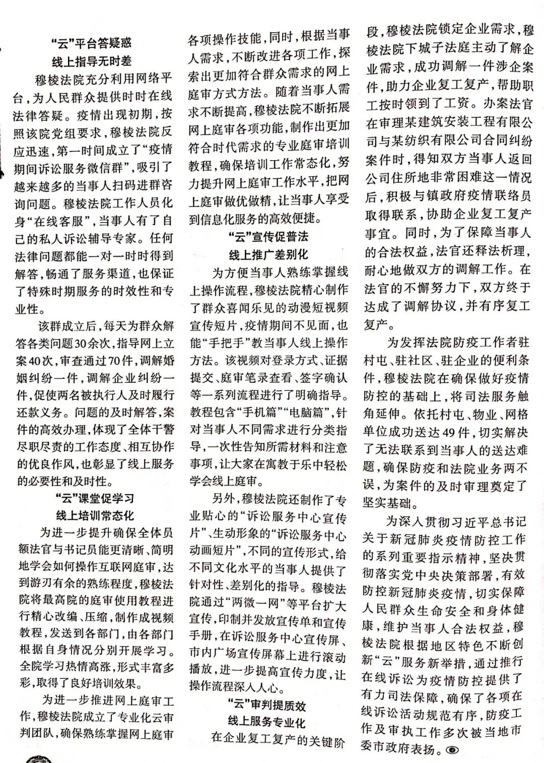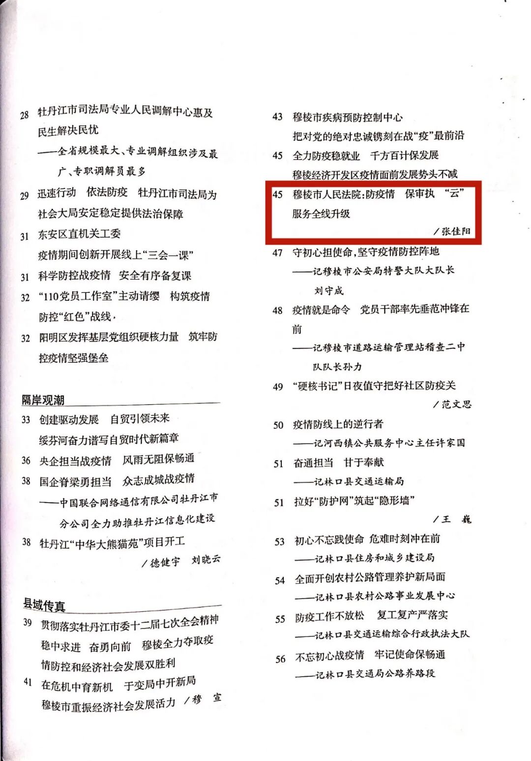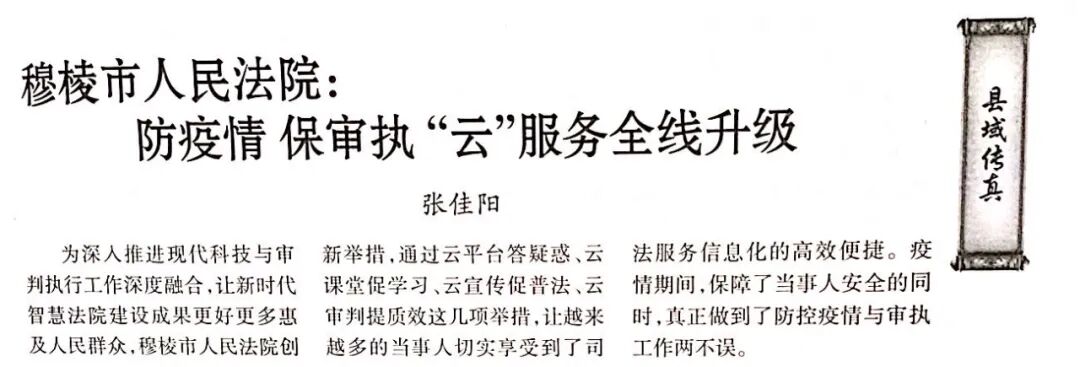 《北方瞭望特刊•新时代的牡丹江》刊登穆棱法院稿件