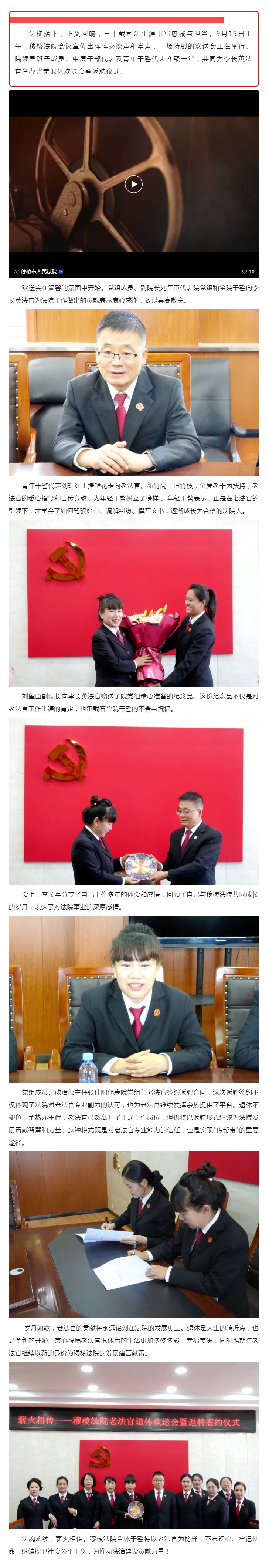 薪火相传 致敬荣光——穆棱法院举行老法官退休欢送会暨返聘签约仪式