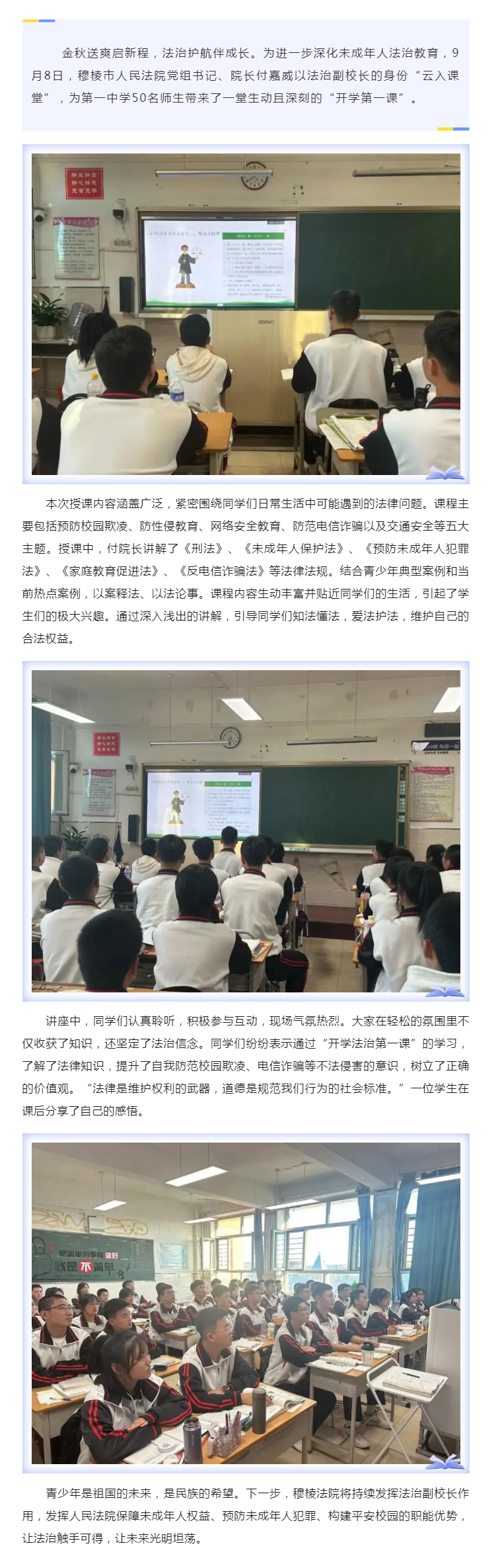 【开学第一课】院长开讲法治课 护航少年青春路