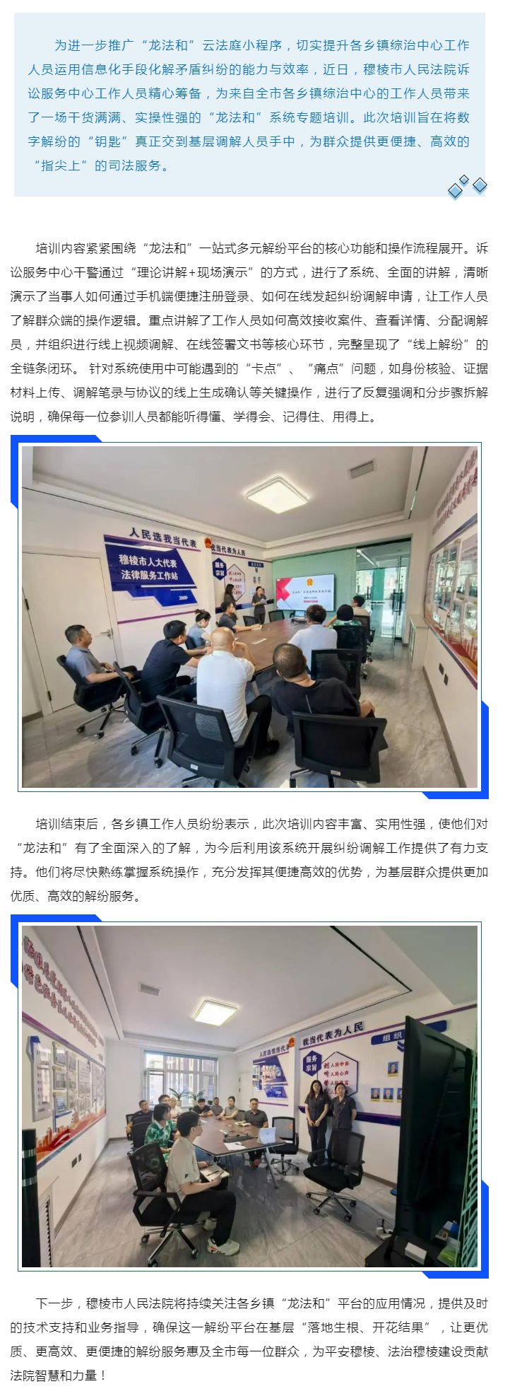 为基层治理人员“充电”,为多元解纷“赋能”——穆棱法院举行“龙法和”云法庭应用技能培训会