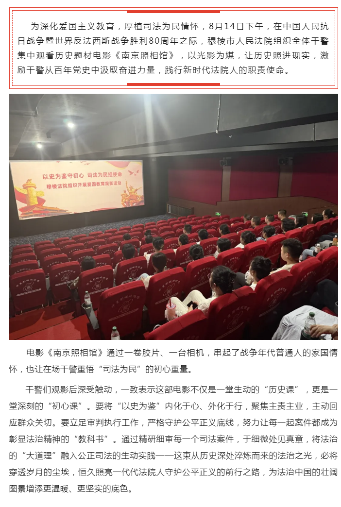 以史为鉴守初心 司法为民担使命——穆棱法院开展爱国教育观影活动