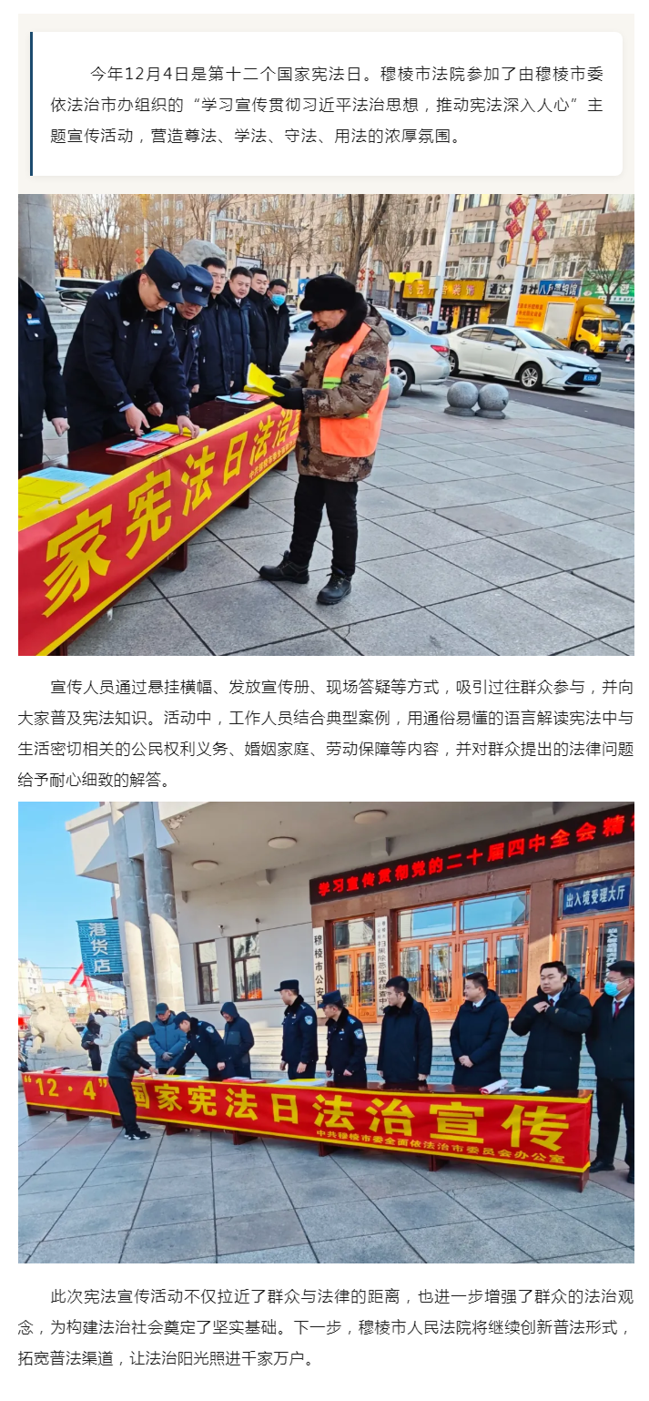 【国家宪法日】弘扬宪法精神,践行宪法使命——穆棱市人民法院开展国家宪法日普法宣传活动
