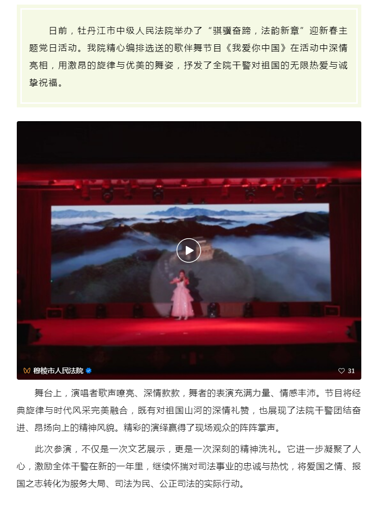 骐骥奋蹄 法韵新章 | 穆棱法院歌伴舞《我爱你中国》燃情上演
