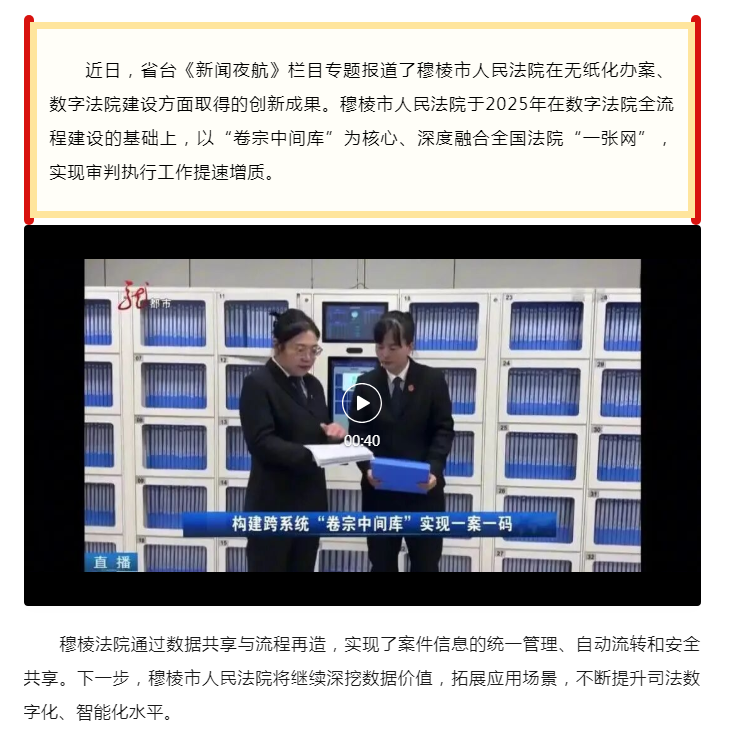 【新闻夜航】构建跨系统卷宗中间库 实现一案一码