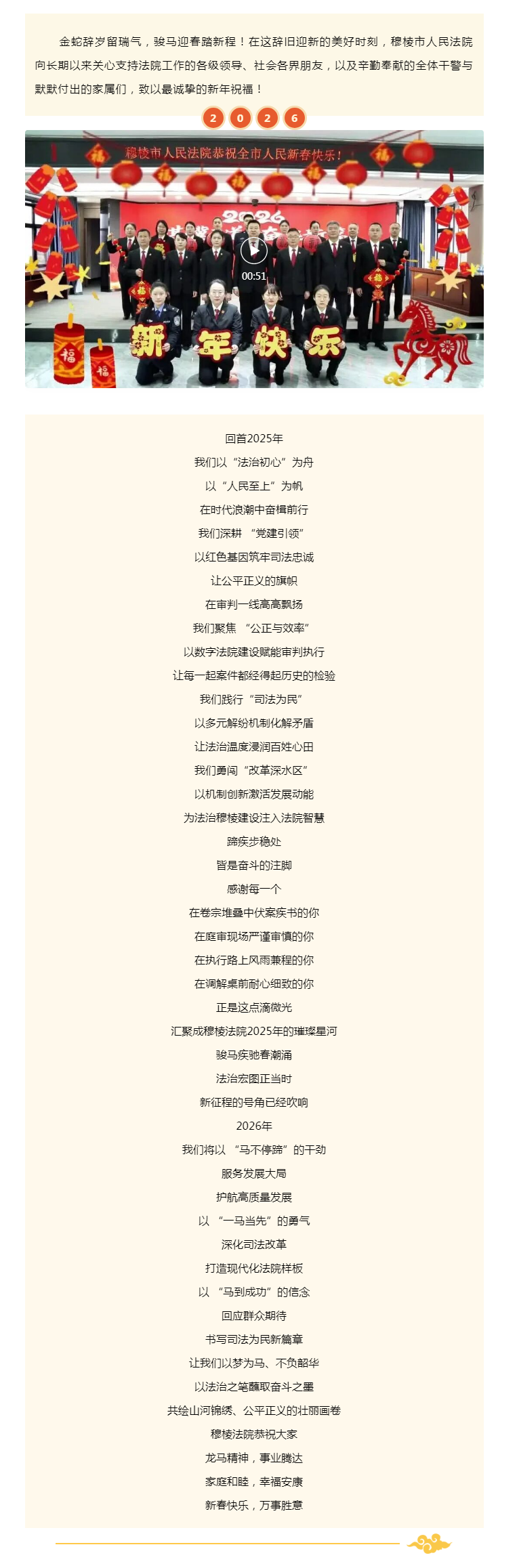 【网络中国节·春节】骏马迎春启新程,法徽闪耀谱华章——穆棱法院给您拜年啦!