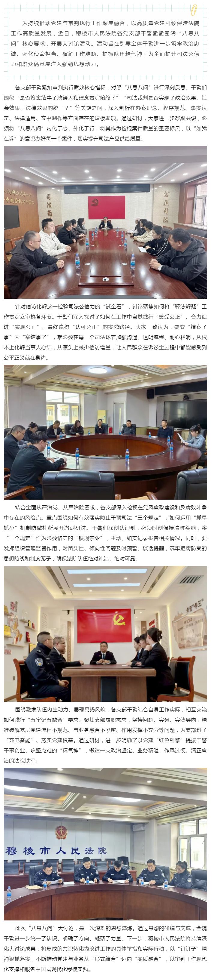 【八思八问·大家谈】深学细悟强根基 实干笃行促融合——穆棱法院深入开展“八思八问”大讨论活动